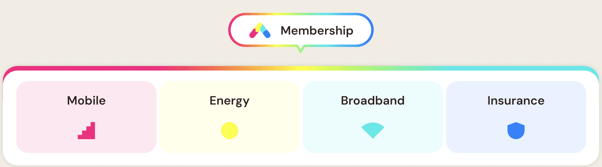 As an Alfred member, you pay a flat £20 membership fee per month. Your energy, broadband, mobile and insurance are then priced at wholesale rates — so your total monthly bill is your membership fee plus the actual cost of your services.